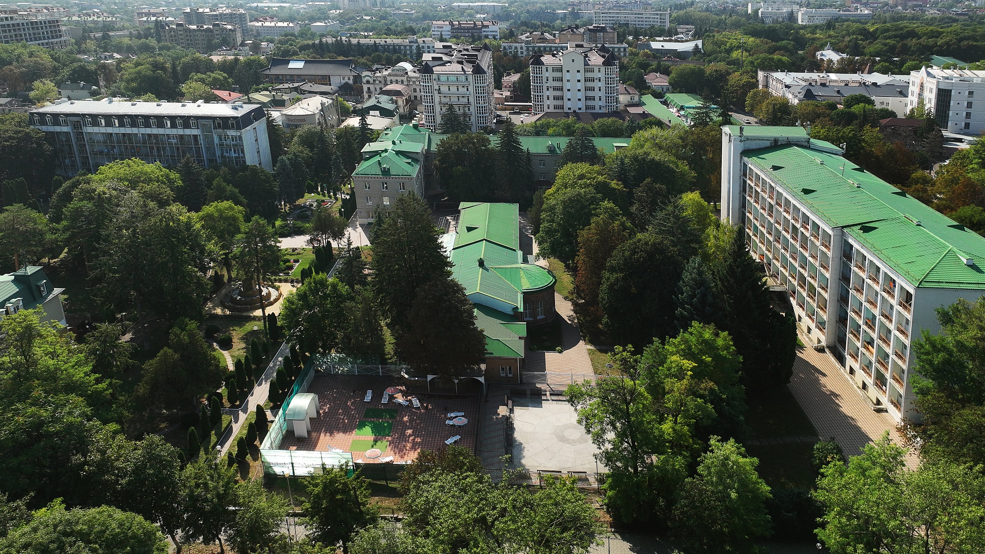 Расположена здравница в экологически чистой парковой зоне. Территорию украшают голубые ели и колоновидные туи, декоративные кустарники и живописные цветники, поэтому воздух здесь необычайно чист. Пешие прогулки по окрестностям, любование колоритными пейзажами усиливают оздоровительный эффект .