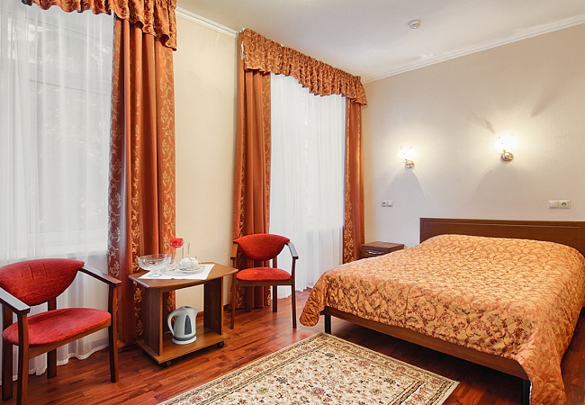 Номера самых разных категорий размещены в трех корпусах разной этажности. Есть и четвертый, новый корпус – трехэтажная «Вилла Герман» – с номерами класса «Люкс». Но какой бы корпус и номер вы ни выбрали, вас везде ждут домашний уют, чистота и комфорт.