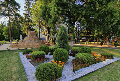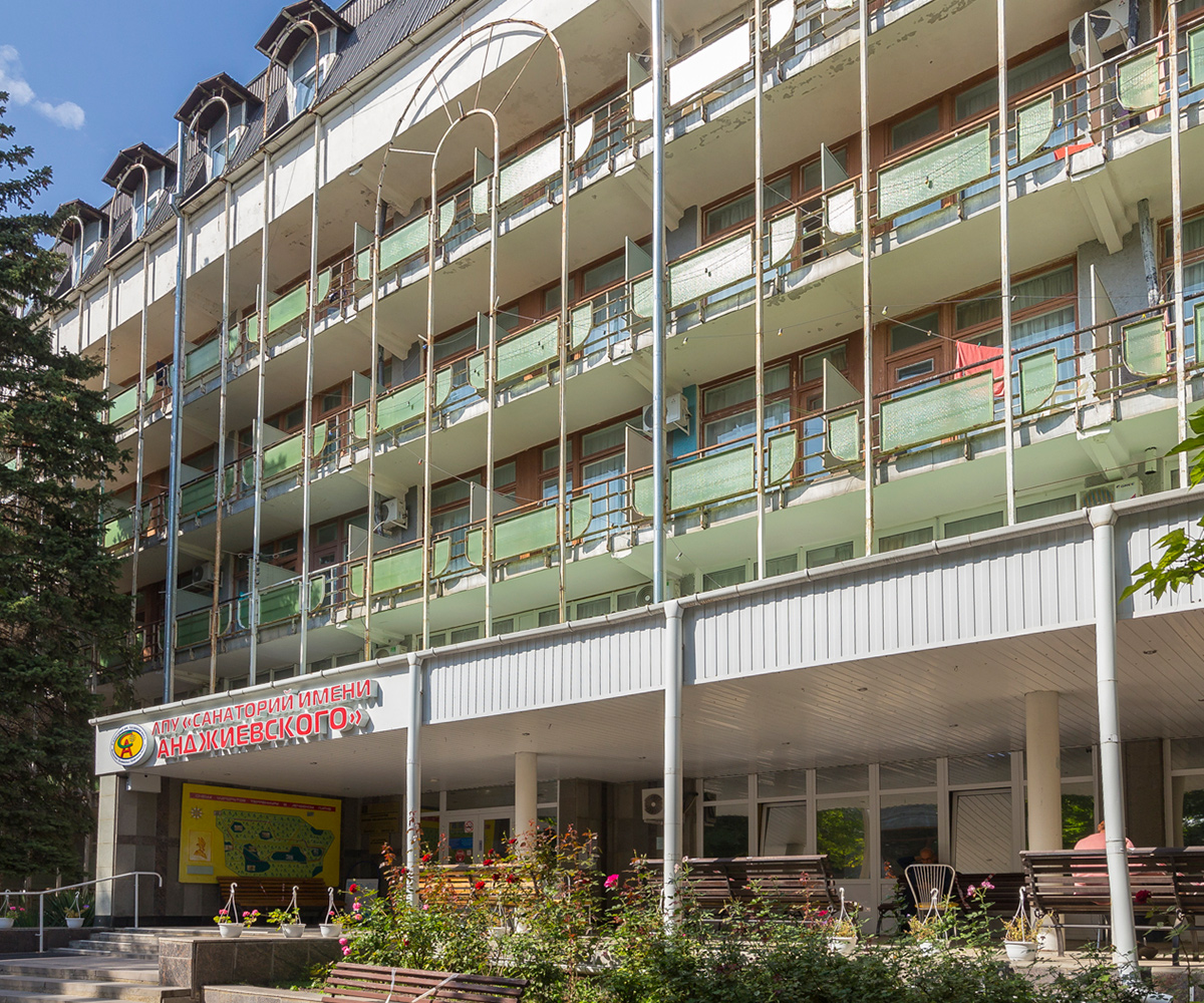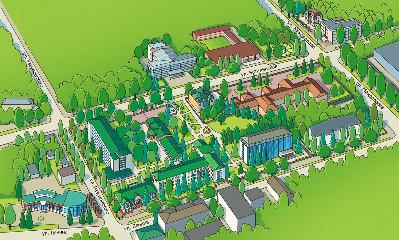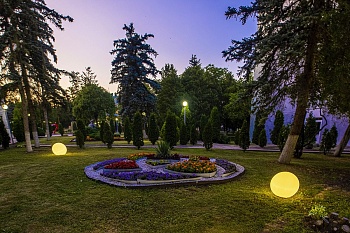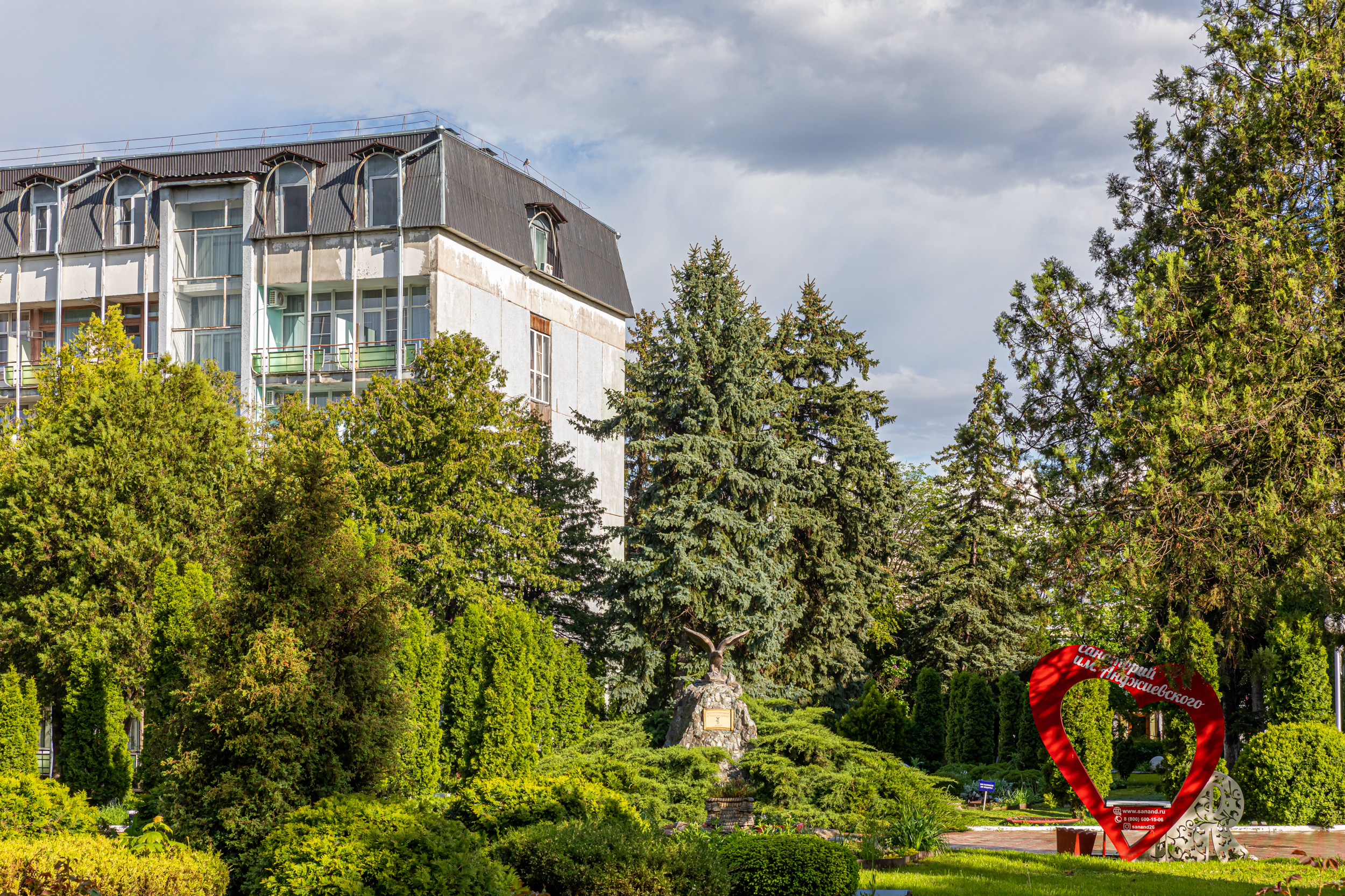 Вокруг корпусов раскинулся собственный парк, где растут голубые ели и колоновидные туи, декоративные кустарники и прекрасные цветы. Здесь обустроены уголки для уютного отдыха на территории санатория.