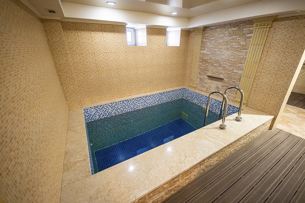 На цокольном этаже расположена сауна с бассейном вместимостью до 4-х человек и комната отдыха.