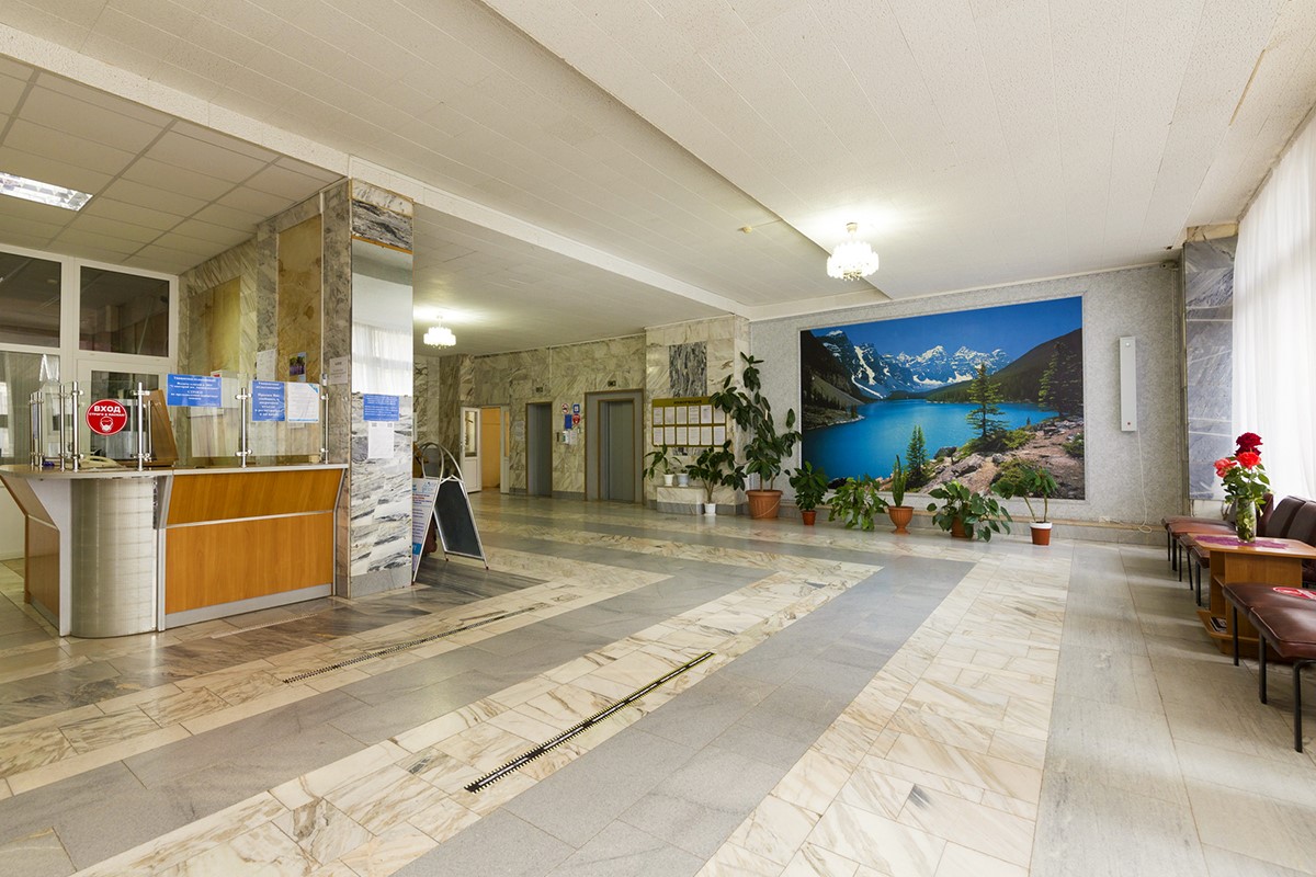 Пятиэтажное здание оборудованное лифтами, 1-ый этаж - регистратура.