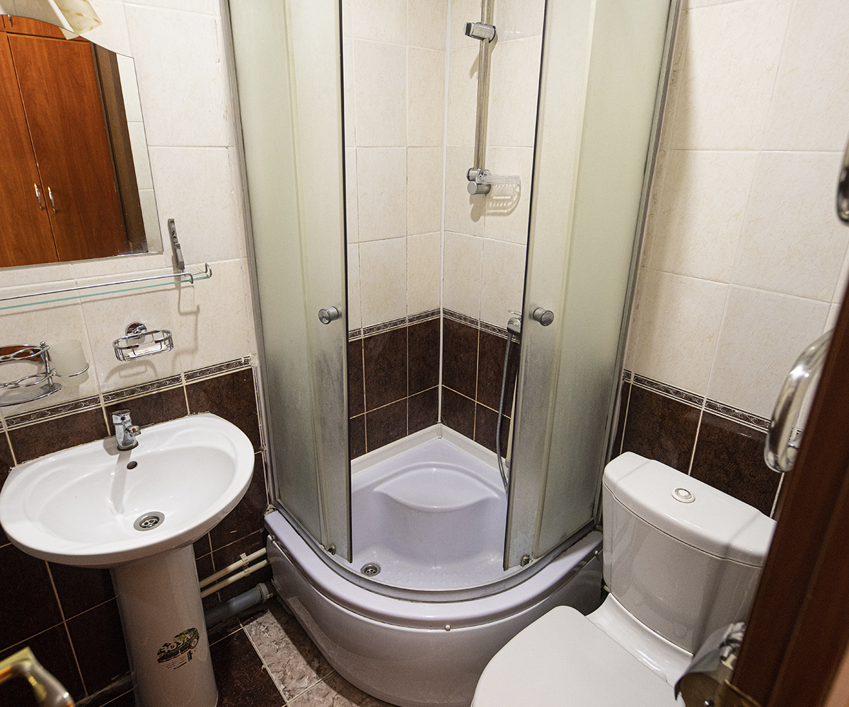 Ванная комната оснащена душевой кабиной и необходимыми гигиеническими принадлежностями. Этот номер станет отличным выбором для комфортного отдыха или деловых поездок, обеспечивая удобство и расслабление в приятной обстановке.