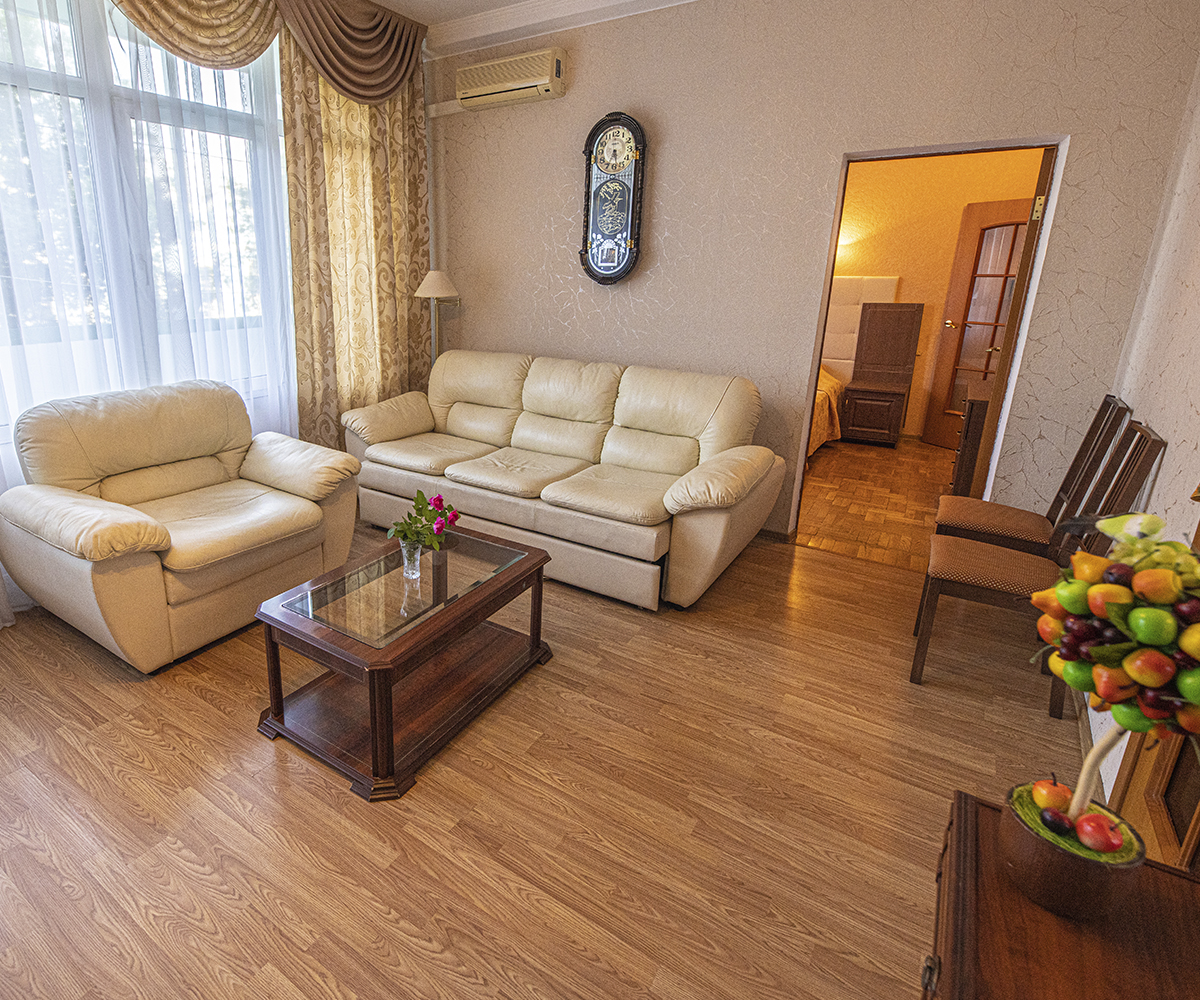 Номер для тех, кому важно личное пространство и максимум доступного комфорта. Если вам хочется использовать все возможности отдыха, но при этом не переплачивать, Апартамент непременно привлечет ваше внимание. В номере есть все необходимое: есть балкон, отопление, сейф для хранения вещей, на первом этаже в холле доступен бесплатный Wi-Fi.