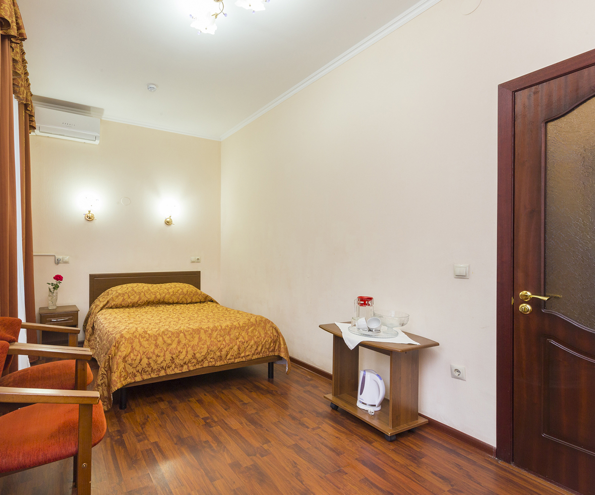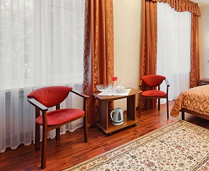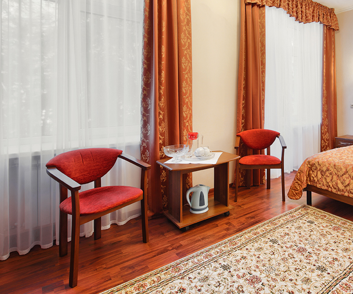 Просторный уютный номер для тех, кому нравится проводить вечер с книгой или за просмотром любимых передач. Для вас мы предусмотрели спутниковое телевидение в каждом полулюксе и интерьер, в котором можно найти свой укромный уголок для чтения.