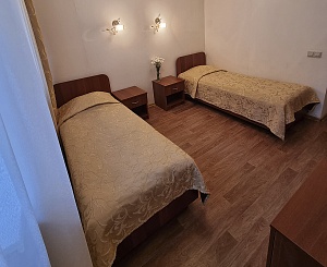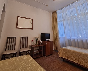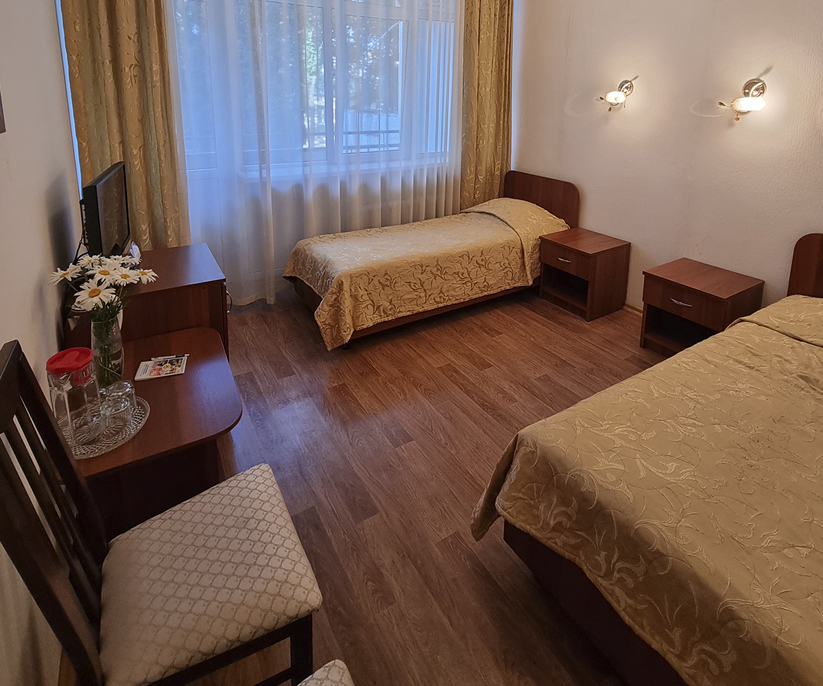 Большая комната с уютным интерьером для двоих отдыхающих. Это место, где приятно провести досуг. Подключено спутниковое телевидение, чтобы вы могли провести вечер как дома, но уже без забот и тревог будней.