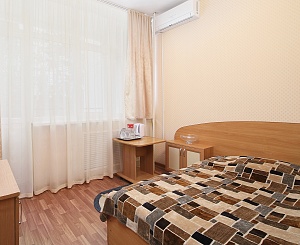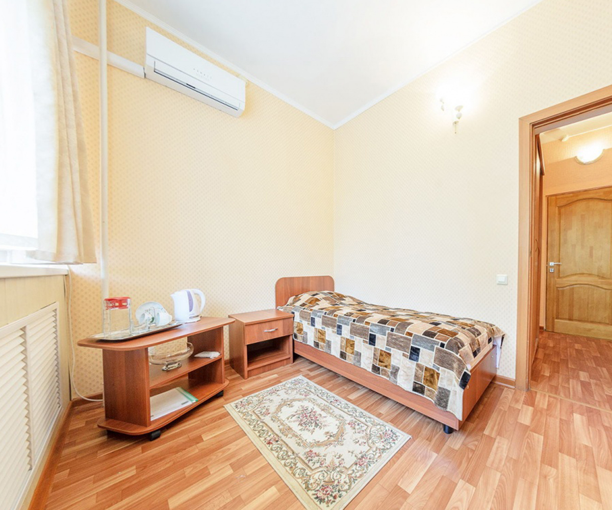 Номер для тех, кто любит путешествия и отдых «на одного». В номере уже предусмотрено все необходимое для проживания без бытовых трудностей. При этом ничего лишнего и отвлекающего от лечения и полноценного отдыха.