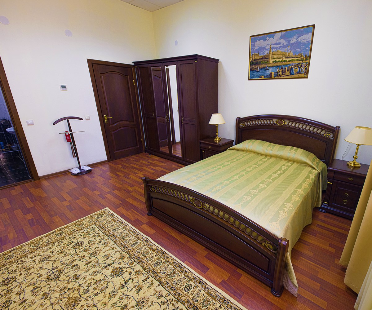 Окунитесь в роскошь и комфорт в двухкомнатном люксе с отдельным балконом. Этот просторный номер предлагает вам стильное сочетание элегантности и уюта. Вас ждет большая двуспальная кровать, раскладной диван, и шикарная гостиная зона для полного расслабления.